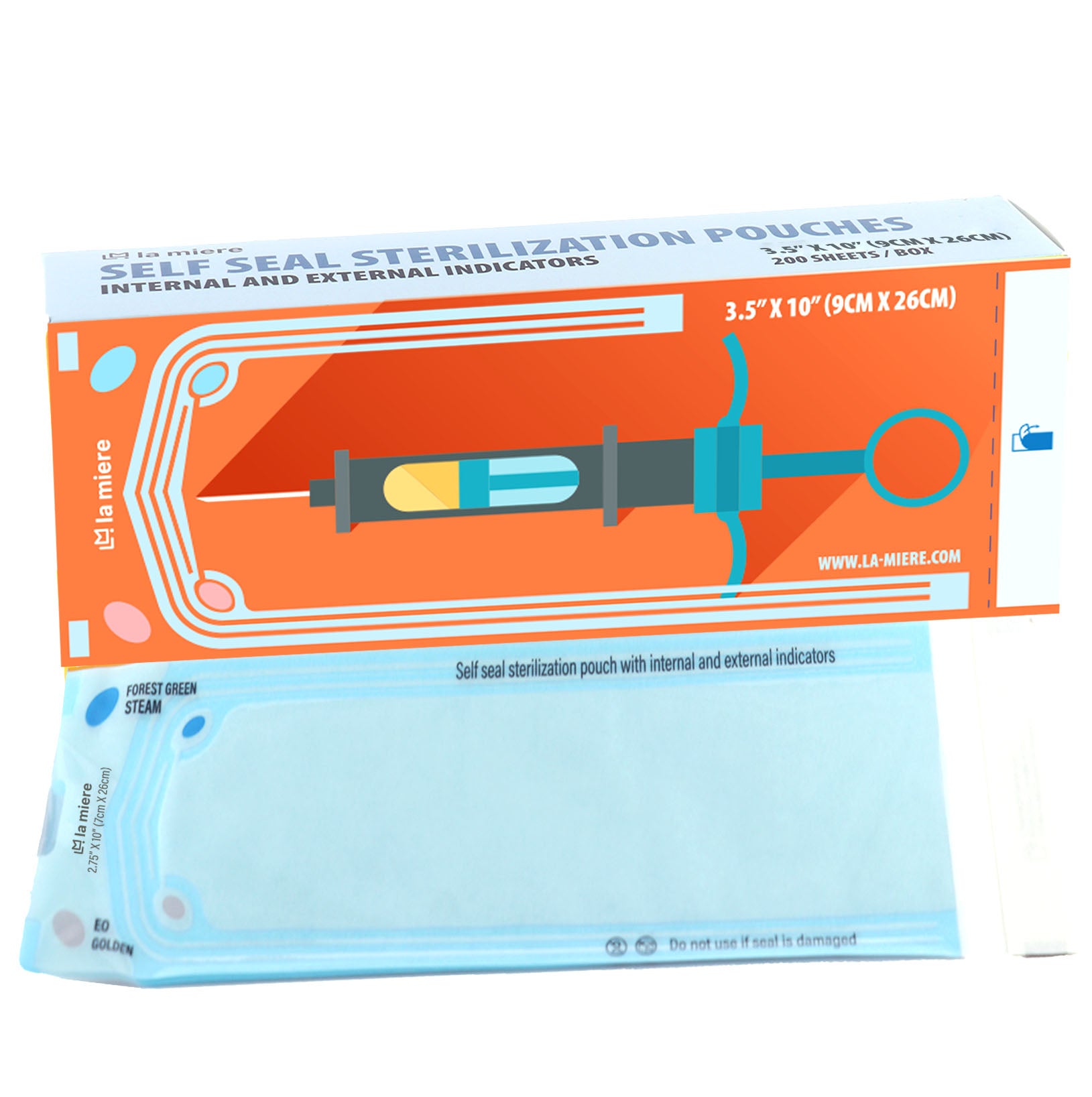 3.50"X10” 200P Self Sterilization Pouches for Dental Offices, Autoclave Bags Pouch for Dentist Tools, for Cleaning Tools, 200 Pouches Per Box, 1 Box of Paper Box