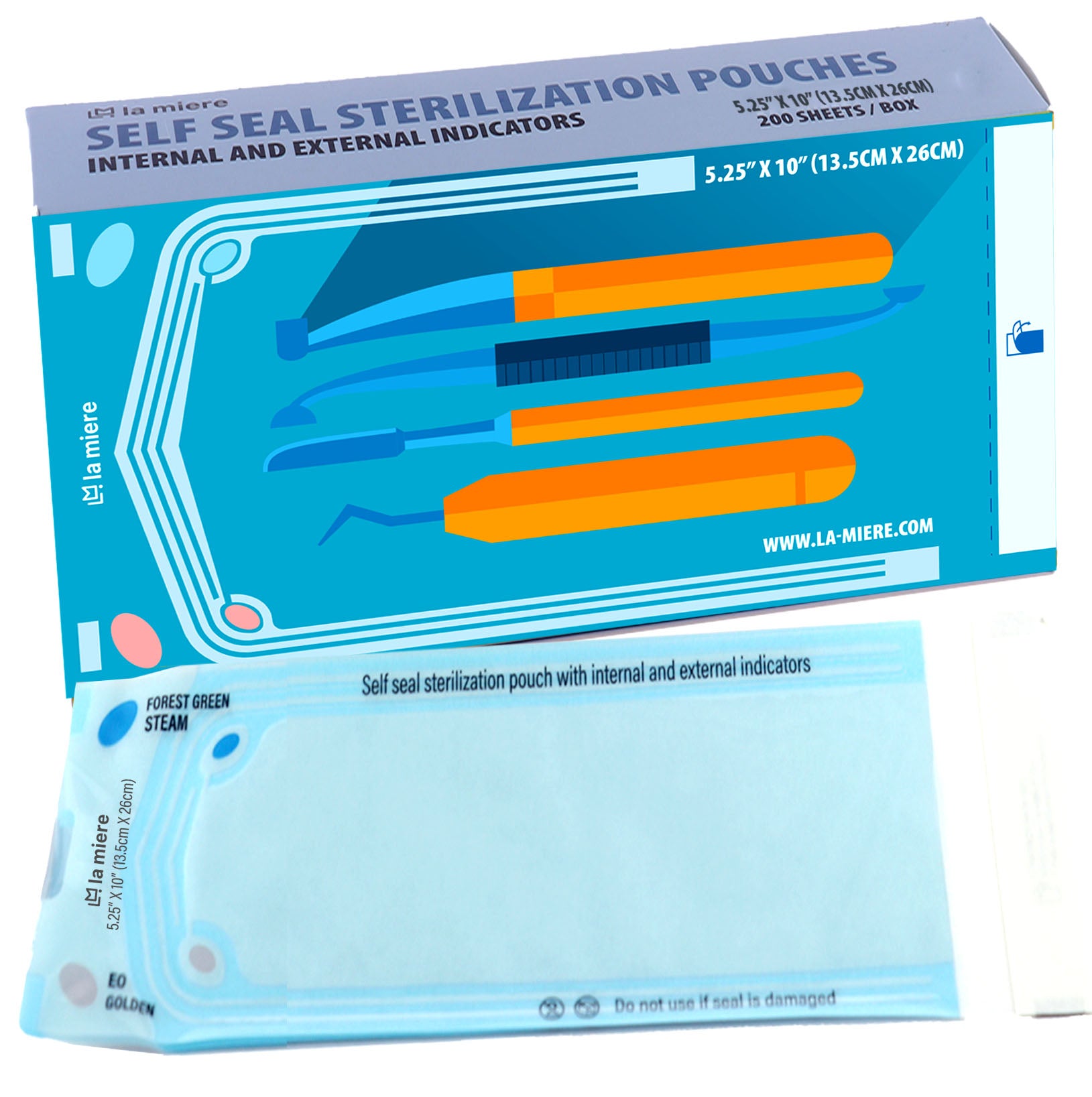 5.25"X10” 200P Self Sterilization Pouches for Dental Offices, Autoclave Bags Pouch for Dentist Tools, for Cleaning Tools, 200 Pouches Per Box, 1 Box of Paper Box