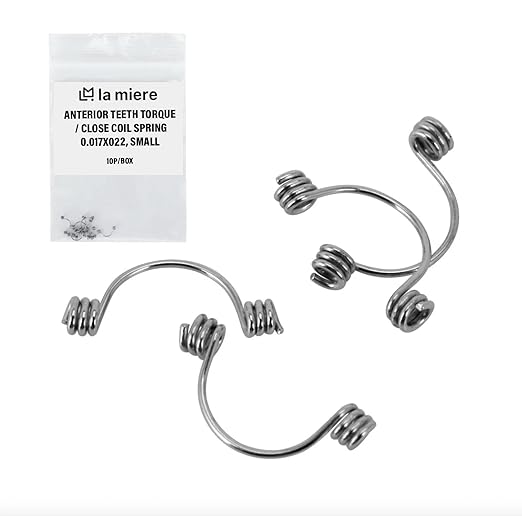 - Application torque spring before the main arch wire with 0.46 mm x 0.64 mm stainless steel wire the torque hole through the main arch wire fixed on both ends of the spring